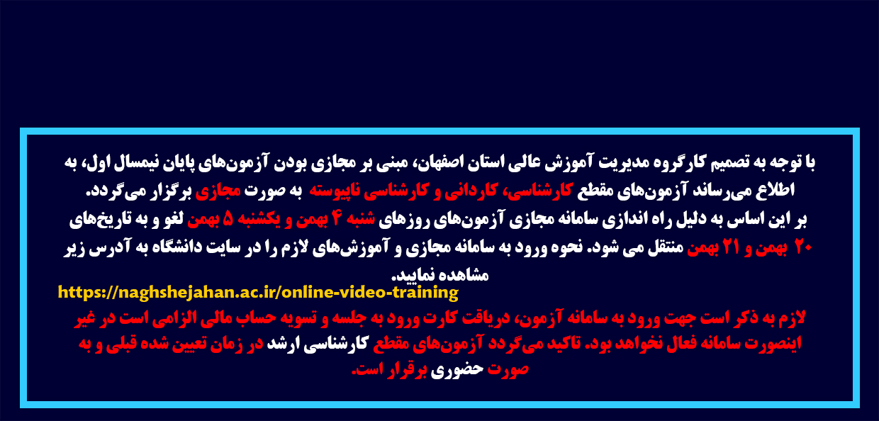 کلیه امتحانات پایان ترم مقطع کاردانی و کارشناسی مجازی شد..